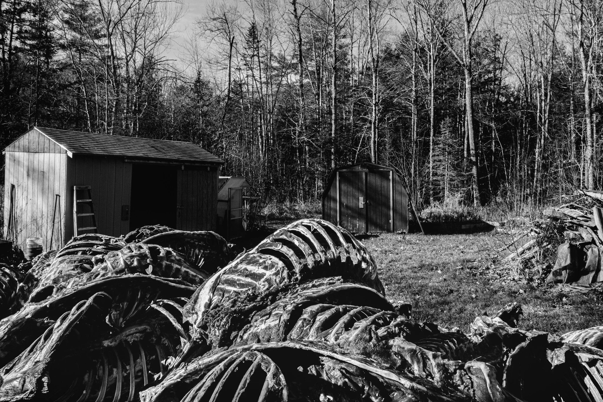 On my way out, I find the owner and thank him for his time. He takes off his glove, shakes my hand, seemingly surprised that I’m finished. As I’m packing up and getting the car. I start to drive out and I notice a giant bone heap, mostly ribcages. I immediately get out of the car and make three more frames. The whole scene is just bizarre, and I can’t help but wonder what type of critters come at night to gnaw at the bones.